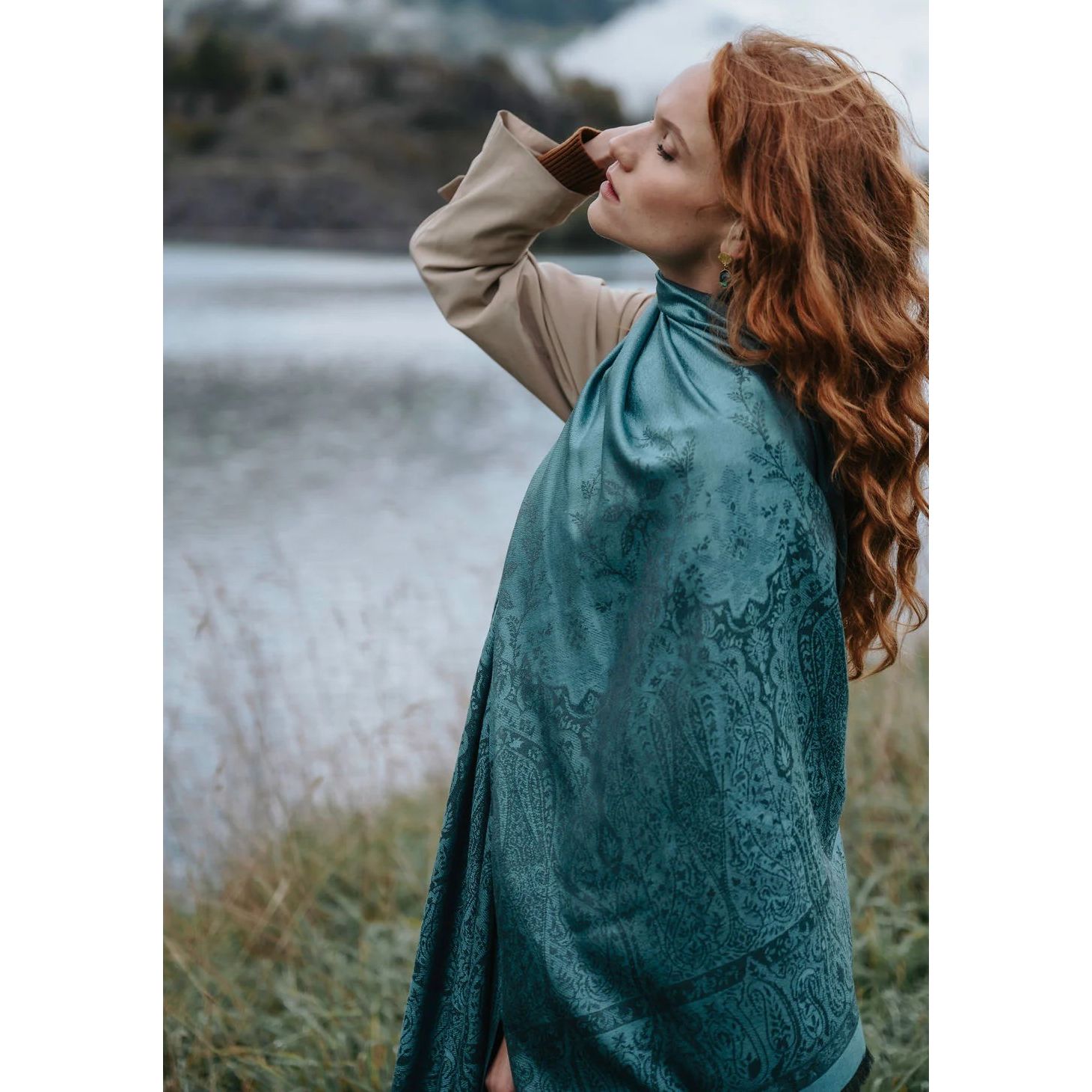 Stola „Palma blau Amazonite“, 200 x 70 cm. Petrusse, 65% Wolle, 35% Seide