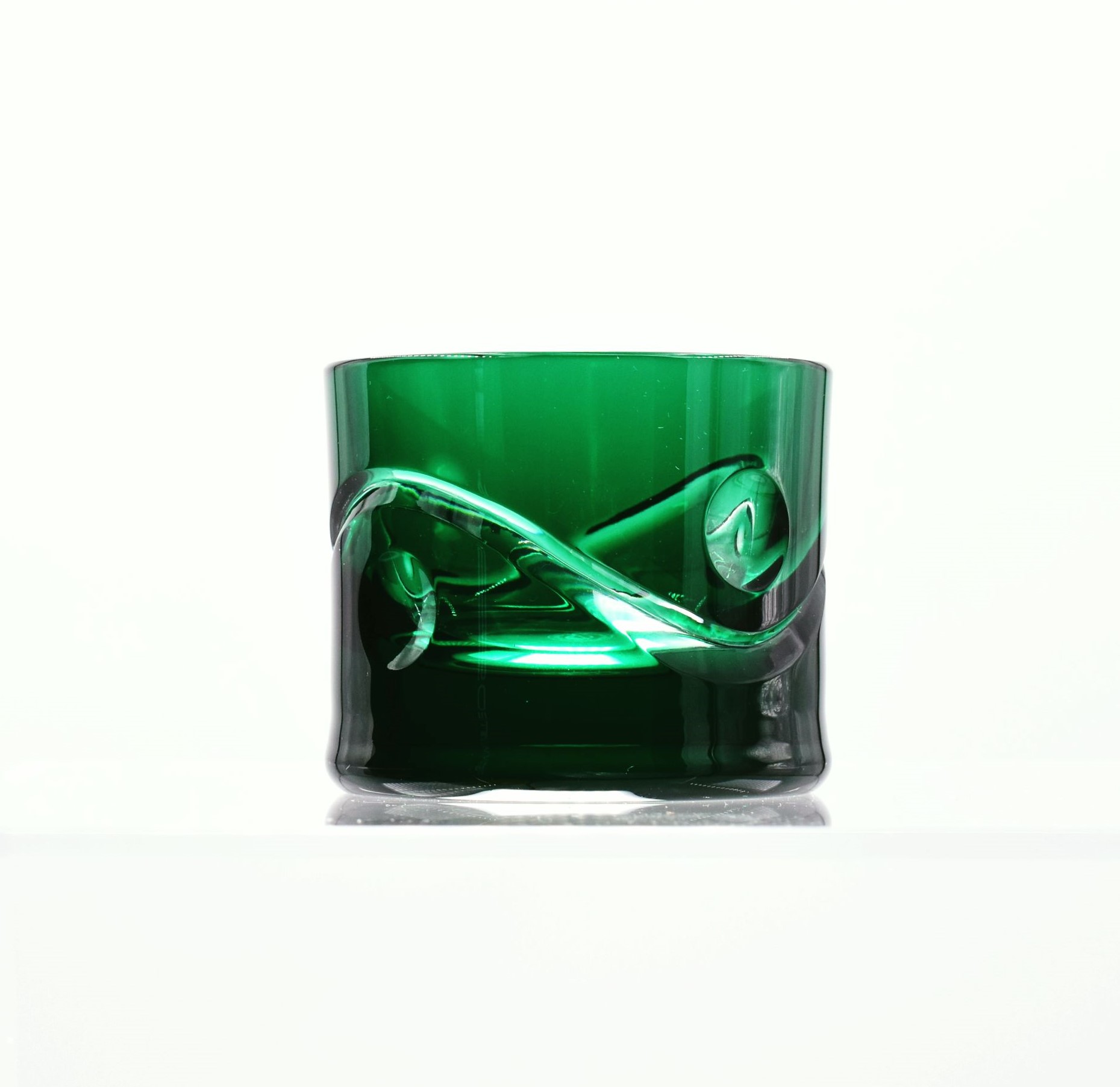 Teelichthalter “Vice Versa”, 6 cm. Cristallerie de Montbronn, dunkelgrünes Kristallglas