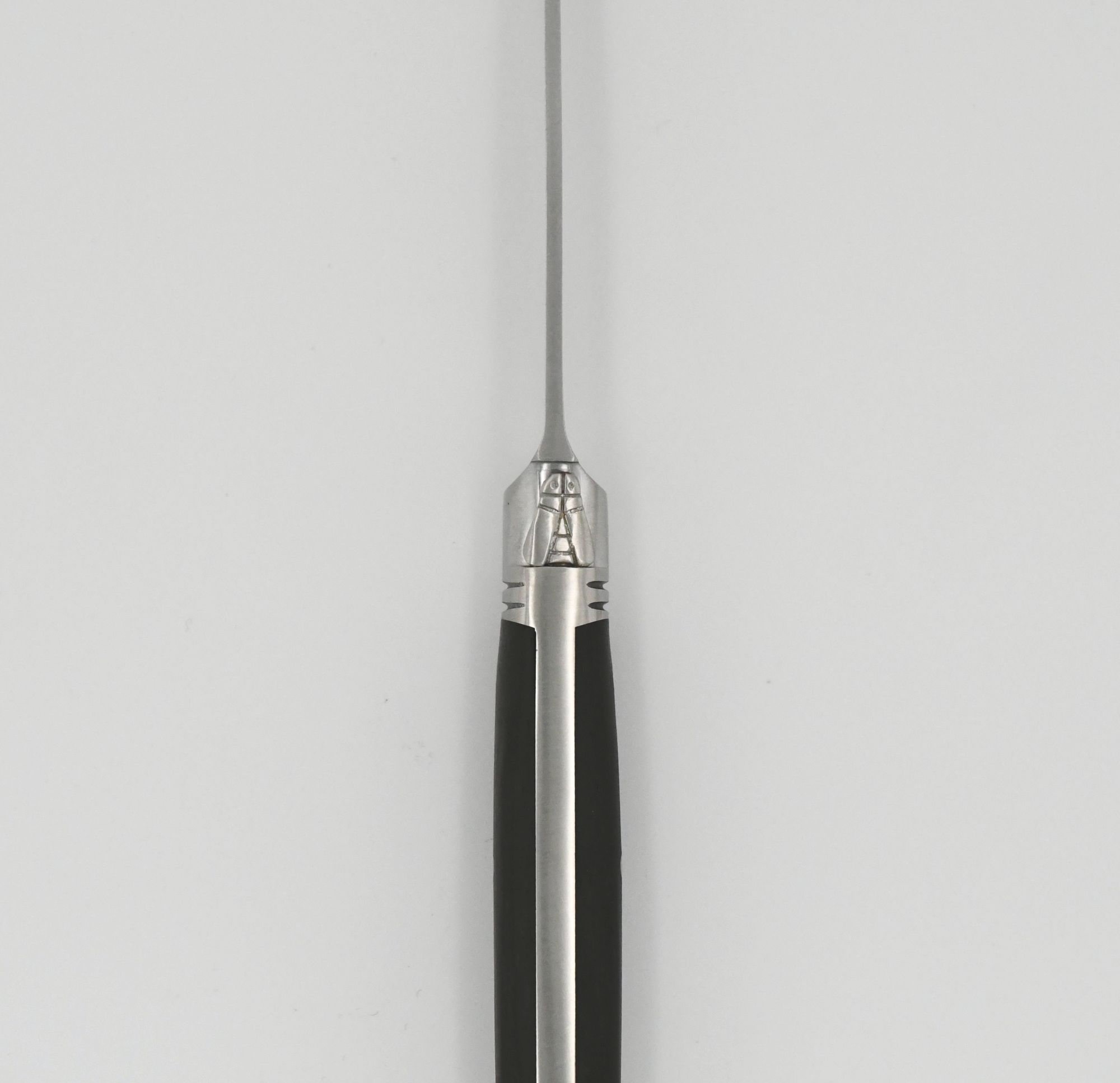 Die berühmten „Laguiole Avantage“ Steakmesser fertigt Goyon-Chazeau aus rostfreiem, mattiertem Stahl von Hand. Die Griffe bestehen aus mondänem Ebenholz. Den Messerrücken ziert die charakteristische Laguiole-Biene.