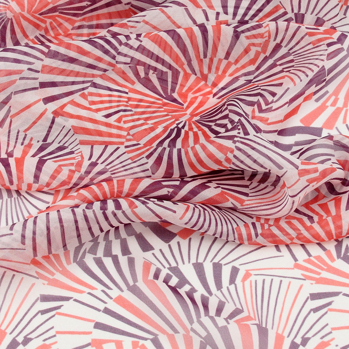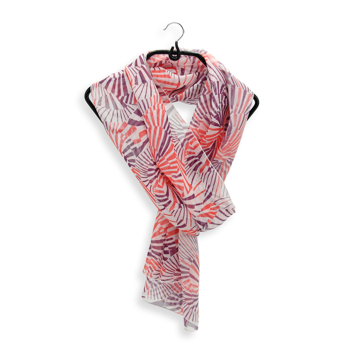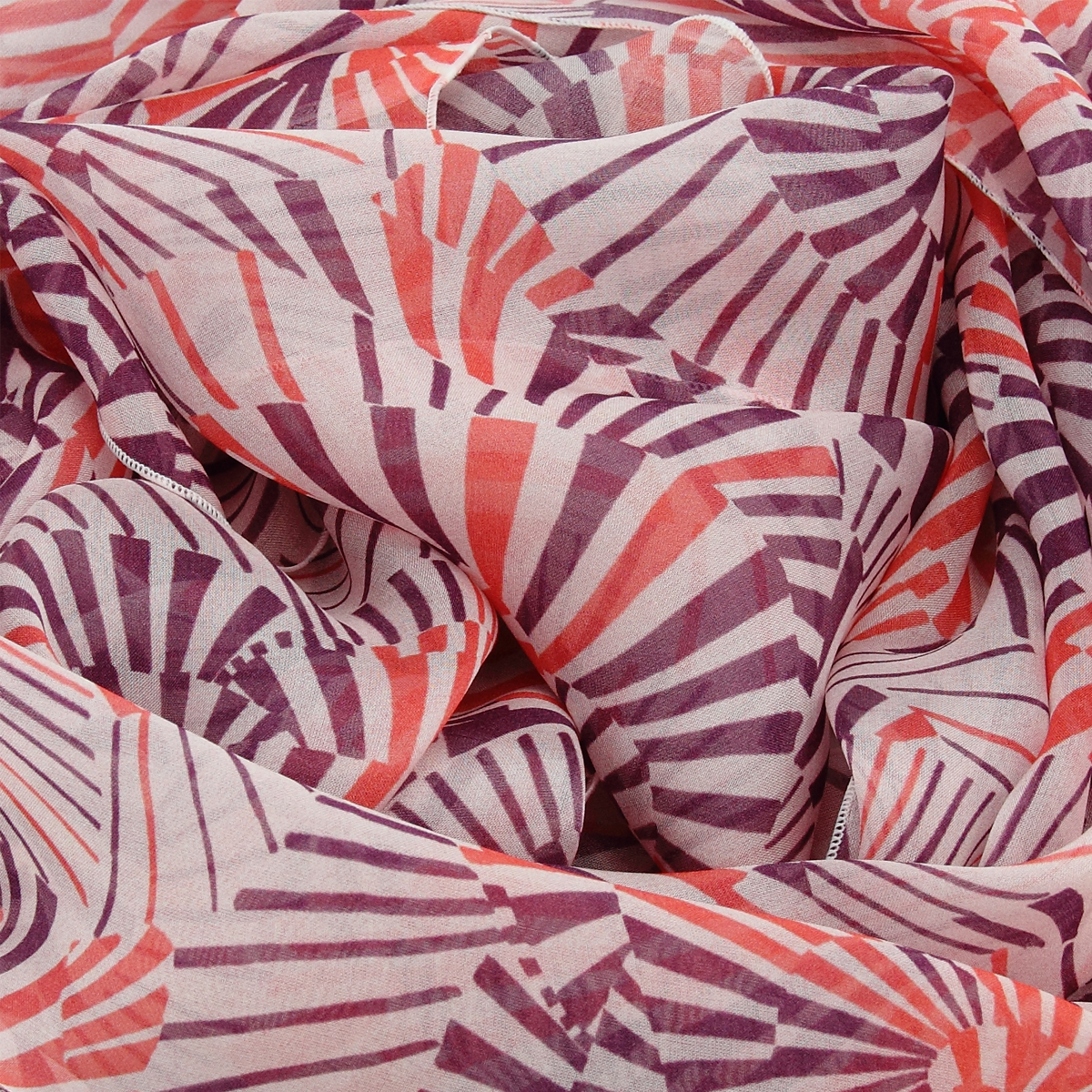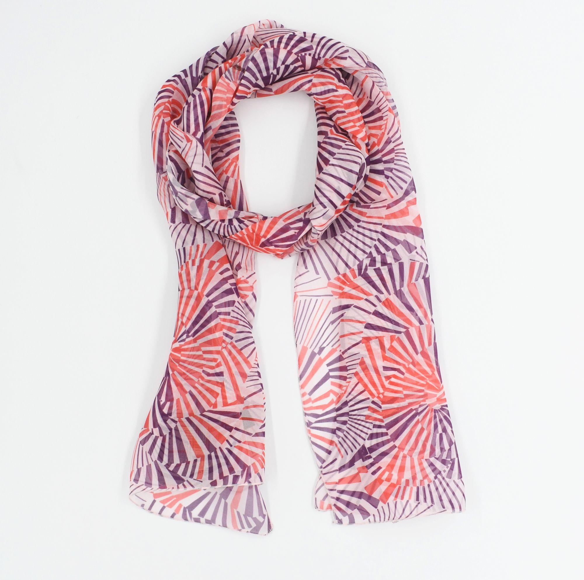 Mit einem filigranen grafischen Motiv in Orange und Violett auf blassem Rosé. Dieser Seidenschal für Damen aus zartem Seidenchiffon verleiht ihrem Outfit den besonderen Farbtupfer. Für Ihren französischen Chic! Ein wunderschönes Accessoir von LA FABRIQUE d’écharpe, Frankreich.
