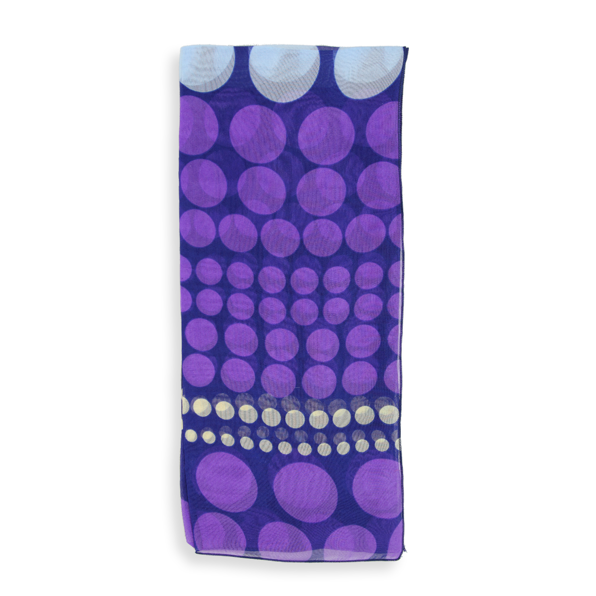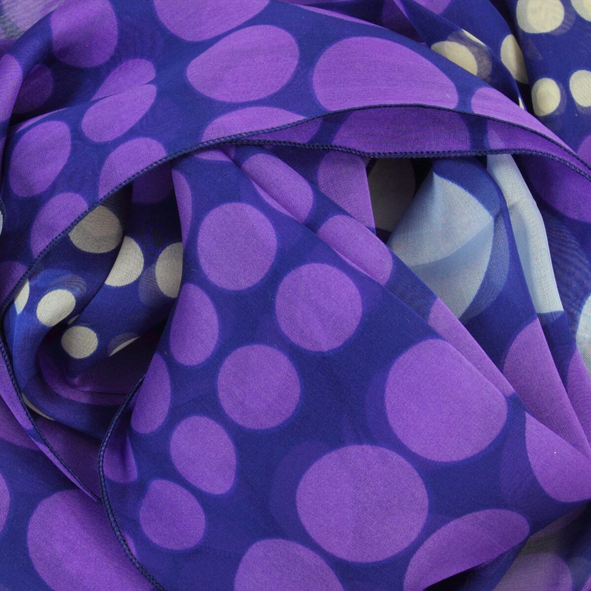 Klassisches Tupfenmuster in Violett, Dunkelblau und Weiß. Luftig-leichter Seidenschal für Damen aus weichem französischem Seidenchiffon. Ein ganz besonderes Stück für Ihren französischen Chic! Von LA FABRIQUE d’écharpe, Frankreich.